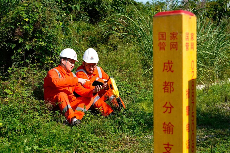 ◎西南管道公司兰成渝分公司党员在巡线途中收看大会开幕直播