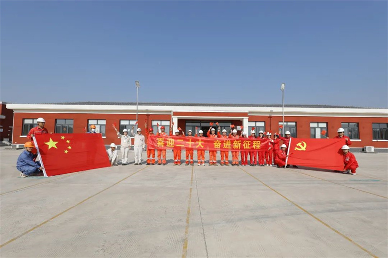 ◎新气管道公司广西支干线项目部员工在衡阳施工现场庆祝党的二十大胜利召开