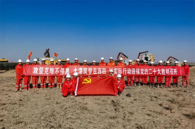 ◎西气东输四线工程建设者在项目现场庆祝大会胜利开幕