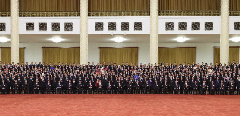 10月23日下午,中共中央总书记、国家主席、中央军委主席习近平等领导同志在北京人民大会堂亲切会见出席党的二十大代表、特邀代表和列席人员,并同大家合影留念。新华社记者 鞠鹏 摄