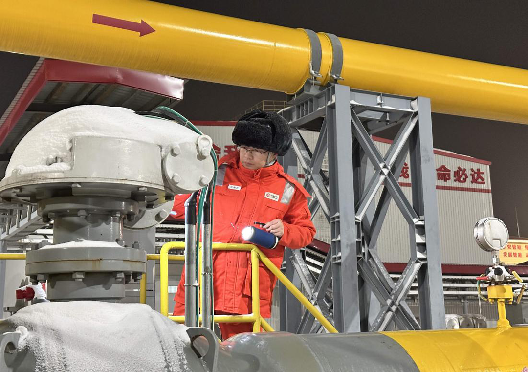 国家管网集团东北公司沈阳联络压气站内,巡检员工在严寒中细致查看仪表上跳动的数字,精准记录天然气输送的实时数据,以实际行动守护辽沈大地千家万户的温暖。