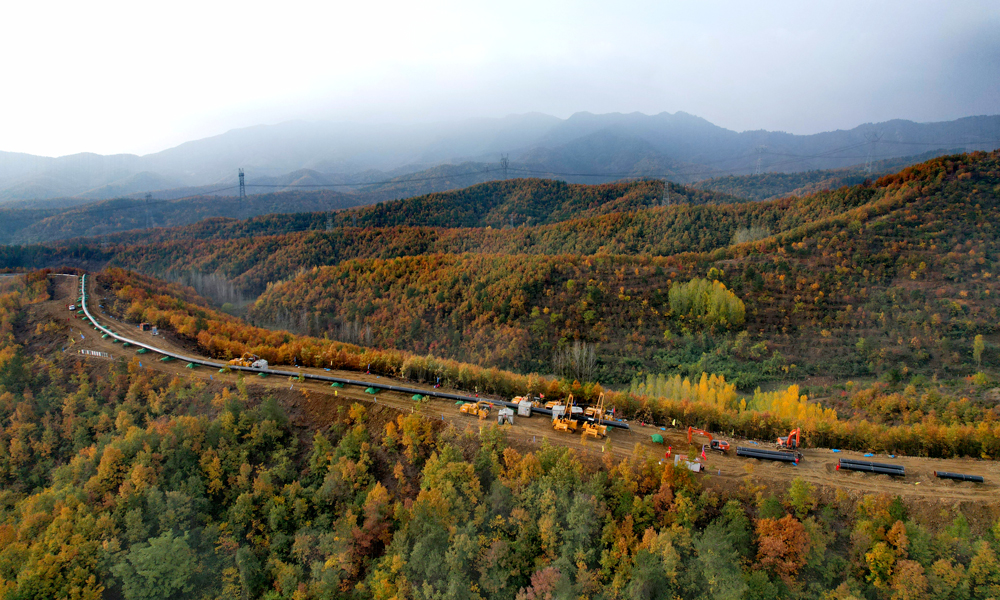 近日拍摄的西气东输三线中卫至枣阳段工程建设现场。