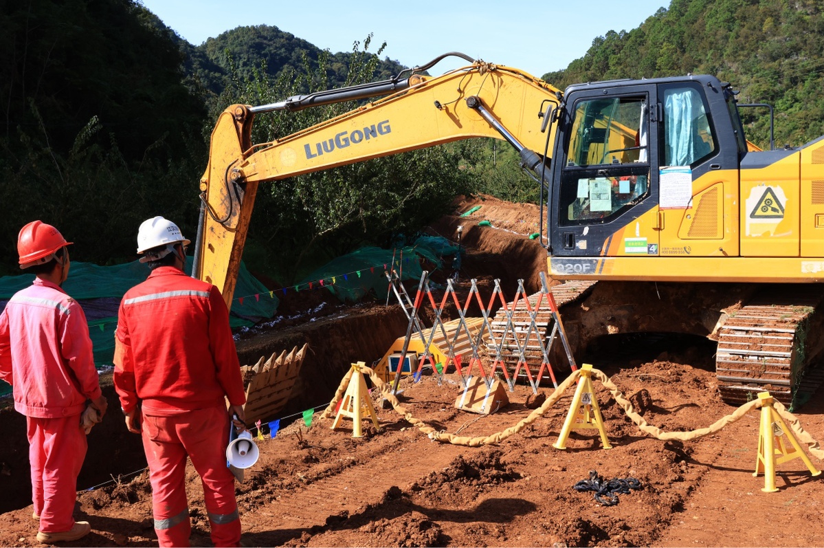 滇桂交界山高谷深,广南县八宝南平镇区域 bb281 段的前后山坡坡度达 39度和49度,工程线路呈现个大 V 字形状,一侧长300米,另一侧长400米。施工机械无法抵达现场,只能采取人工开挖方式。此地雨水多、汛期长,地质灾害频发,加之工期紧、任务重,工程建设伊始便面临多重考验。建管融合组与项目分部拧成 “一股绳”,打出 “技术创新 + 精细管理” 组合拳,逐个破解施工难题。