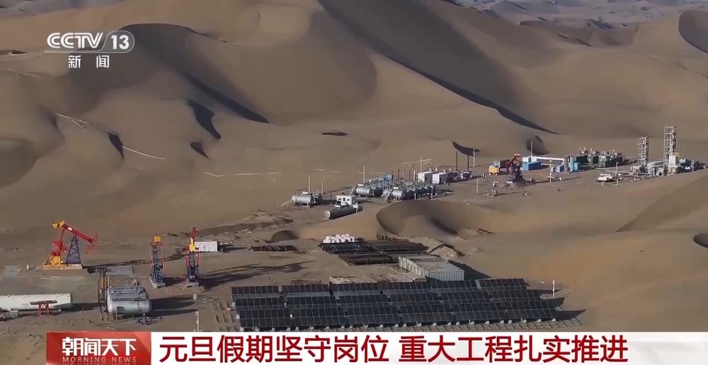 不仅是在高原,元旦假期,在沙漠、深海等建设现场,建设者们都坚守在一线。在巴丹吉林沙漠腹地的一个油田,刚刚实现了首次冬季钻井作业,70多名石油工人坚守大漠深处,为极端复杂条件下能源勘探积累宝贵经验。
