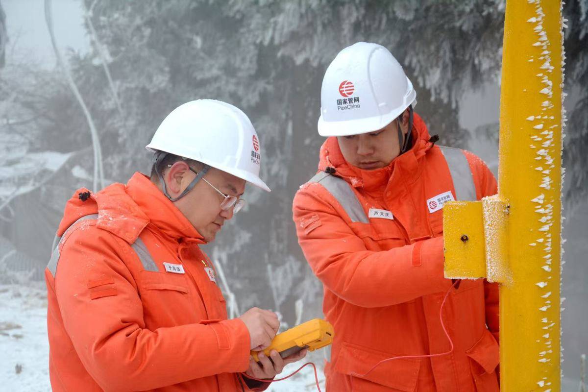 在襄阳作业区,联合巡检小组冒雪对输油气管线、阀门、仪表等开展“拉网式”排查。武汉南作业区内,一线员工在飘雪中坚持维检作业,为阀门包裹新保温层,检查电伴热情况。潜江作业区连夜对外电线路展开特巡,紧急调配无人机做好带电除冰准备,成功平稳应对11次电网波动。在海拔1100米的鄂西山区,宜昌作业区巡线人员踏雪徒步,开展管道巡护与阴保数据测试,用脚步丈量安全,在风雪中践行管道人的责任。